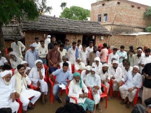 रकबर के घर के आसपास पत्रकारों, सामाजिक कार्यकर्ताओं और नेताओं की गाड़ियां खड़ी हैं। तंग गली के एक तरफ वाले खुले आंगन में मर्द बैठे हैं तो दूसरी तरफ रकबर के घर के आंगन में औरतें। आसपास के घरों की मुंडेरों से औरतें दोनों तरफ ताक रही हैं। खुले आंगन में राजस्थान के एक सामाजिक संगठन के कार्यकर्ता गांव के मर्दों से घिरे हुए हैं। उसी भीड़ में रकबर के पिता और उनके चचेरे भाई हारून बैठे हुए हैं जो उनके पूछे गए सवालों का जवाब दे रहे हैं। एक सामाजिक कार्यकर्ता के मामले की स्थिति पूछने पर हारून बताते हैं,
