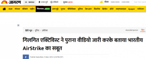 संयोगवश, जागरण की बदली हुई खबर भी तथ्यात्मक रूप से गलत थी। इस समाचार संगठन ने अब दावा किया कि “गिलगित एक्टिविस्ट ने पुराना विडियो जारी करके बताया भारतीय Air Strike का सबूत”।