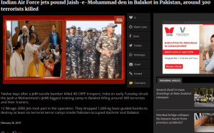 1. इस हिंदी मीडिया संगठन ने 27 फरवरी को दिल्ली सिटी प्रिंट संस्करण में पहले पन्ने पर “बालाकोट में 300 आतंकवादी मारे गए” पर खबर प्रकाशित की।