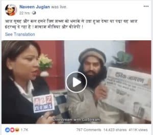 “आज सुबह और कल हमने जिस शख्स को धमाके से उड़ा हुआ देखा या पढ़ा वह आज इंटरव्यू दे रहा है ! शाबाश मीडिया और बीजेपी।” -यह कैप्शन सोशल मीडिया में चल रहे एक वीडियो की व्याख्या करता है। एक यूजर, नवीन जुगलन (यह पोस्ट अब हटा दिया गया है) द्वारा ऊपर वर्णित संदेश के साथ शेयर किए गए इस वीडियो को 14,000 बार से ज्यादा शेयर और 4 लाख से ज्यादा बार देखा गया था।
