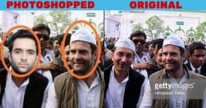 ऑल्ट न्यूज़ ने पाया कि वह तस्वीर जिसमें पुलवामा का आत्मघाती हमलावर और राहुल गांधी एक साथ दिखते हैं, वह फोटोशॉप की हुई है। हमें, फोटो वायर एजेंसी गेट्टी इमेजेज द्वारा पोस्ट की गई असली तस्वीर मिली।
