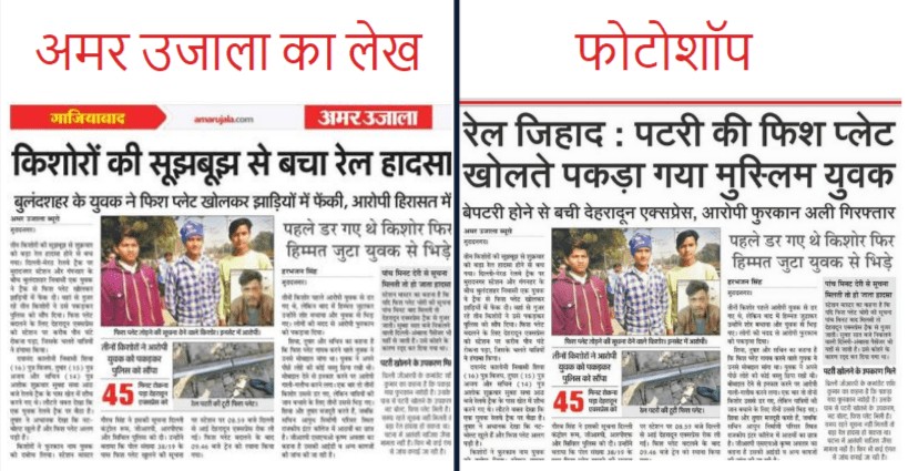 रेल जिहाद: अमर उजाला के खबर की फोटोशॉप तस्वीर सोशल मीडिया पर शेयर