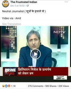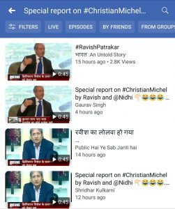 5 दिसंबर की शाम को पोस्ट किए गए उपरोक्त ट्वीट को 4500 से अधिक लाइक और 2500 से अधिक बार रीट्वीट किया गया है. कई दूसरे हैंडल्स ने भी इस क्लिप को पोस्ट किया है, जिसमें रवीश कुमार कह रहे हैं — “…हमारी सहयोगी निधि राज़दान और नीता शर्मा ने बुधवार शाम खबर दी है कि दुबई की अदालत ने क्रिश्चियन मिशेल को भारत ले जाने का कोई आदेश ही नहीं दिया है. अदालत ने यूं ही टिप्पणी की थी जिसका संबंध खास तौर से मिशेल से भी नहीं था. लेकिन मंगलवार को, कई पत्रकारों ने सूत्रों के हवाले से दनादन इस खबर को ब्रेक कर दिया, चैनलों पर चर्चाएं शुरू होने लगीं और…”.