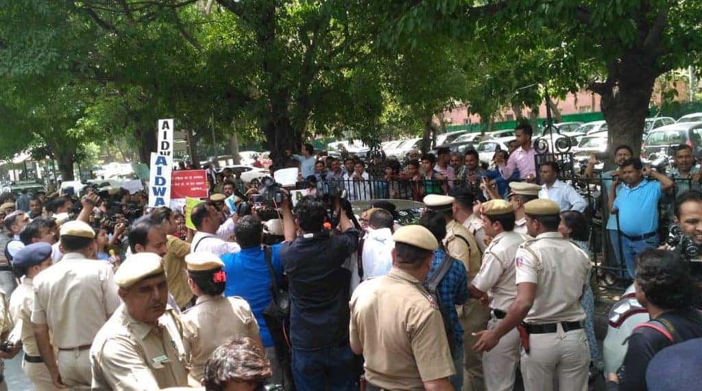 इस फैसले के ख़िलाफ़ सुप्रीम कोर्ट के बाहर महिला कार्यकर्ताओं, वकीलों और आइसा के प्रदर्शनकारी पोस्टर और बैनर लगाकर प्रदर्शन कर रहे हैं.