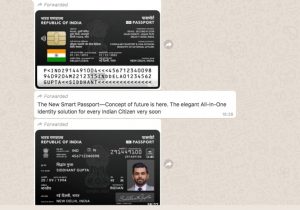 समान दावों के साथ, फेसबुक, ट्विटर और व्हाट्सएप्प पर एक संदेश वायरल है कि भारत में जल्दी ही डेबिट कार्ड जैसा नया ‘स्मार्ट’ पासपोर्ट शुरू होगा। यह संदेश इस प्रकार है, “यहां है भविष्य की एक नई पासपोर्ट परिकल्पना। प्रत्येक भारतीय नागरिक के लिए सुंदर ऑल-इन-वन परिचय समाधान बहुत शीघ्र। यह डेबिट/क्रेडिट कार्ड जैसा होगा। इसे स्वाइप कीजिए और बाहर जाइए।” -(अनुवाद)