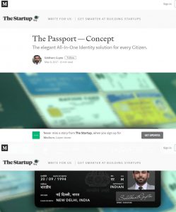 यह लेख, इंजीनियर और डिज़ाइनर सिद्धांत गुप्ता द्वारा लिखा गया था, जिन्होंने पासपोर्ट का एक परिकल्पित-डिज़ाइन तैयार किया था जो पॉकेट-आकार के एटीएम कार्ड जैसा दिखता है। गुप्ता ने लिखा था, “बहुत ज्यादा सोचने के बाद, मैंने ठीक पासपोर्ट जैसा डिजाइन करने की कोशिश की। क्या होता, अगर हमारा पासपोर्ट एक बुकलेट की बजाय कार्ड होता, जो हमारे बटुए में आसानी से समा जाता और हम चिंतित नहीं रहते कि अंततः कोई पेज बाहर न आ जाए।”