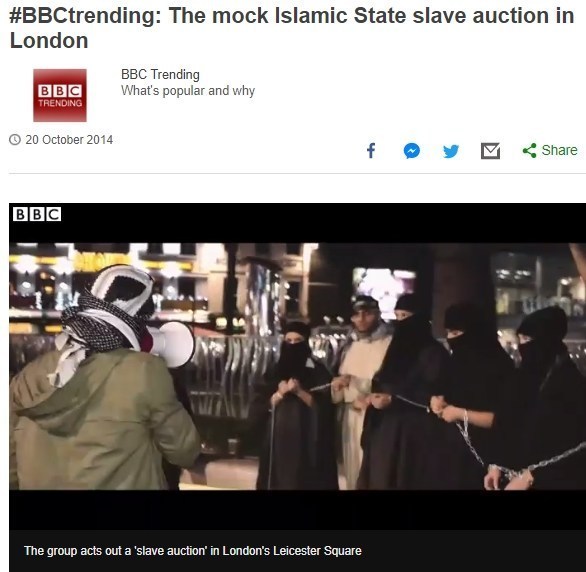 निष्कर्ष के तौर पर, ट्विटर पर पोस्ट किया गया वीडियो ISIS सेक्स स्लेव की नीलामी करने का एक नाटकीय वीडियो है, जिसे ISIS के विरोध में 2014 में लंदन में एक कुर्द समूह द्वारा प्रदर्शित किया गया था।