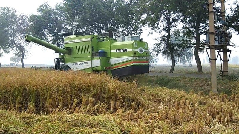धान काटने वाली मशीन. यही मशीन अपने पीछे पराली काटकर छोड़ते जाती है.