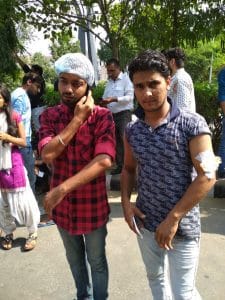 पुलिस के लाठीचार्ज से घायल छात्र