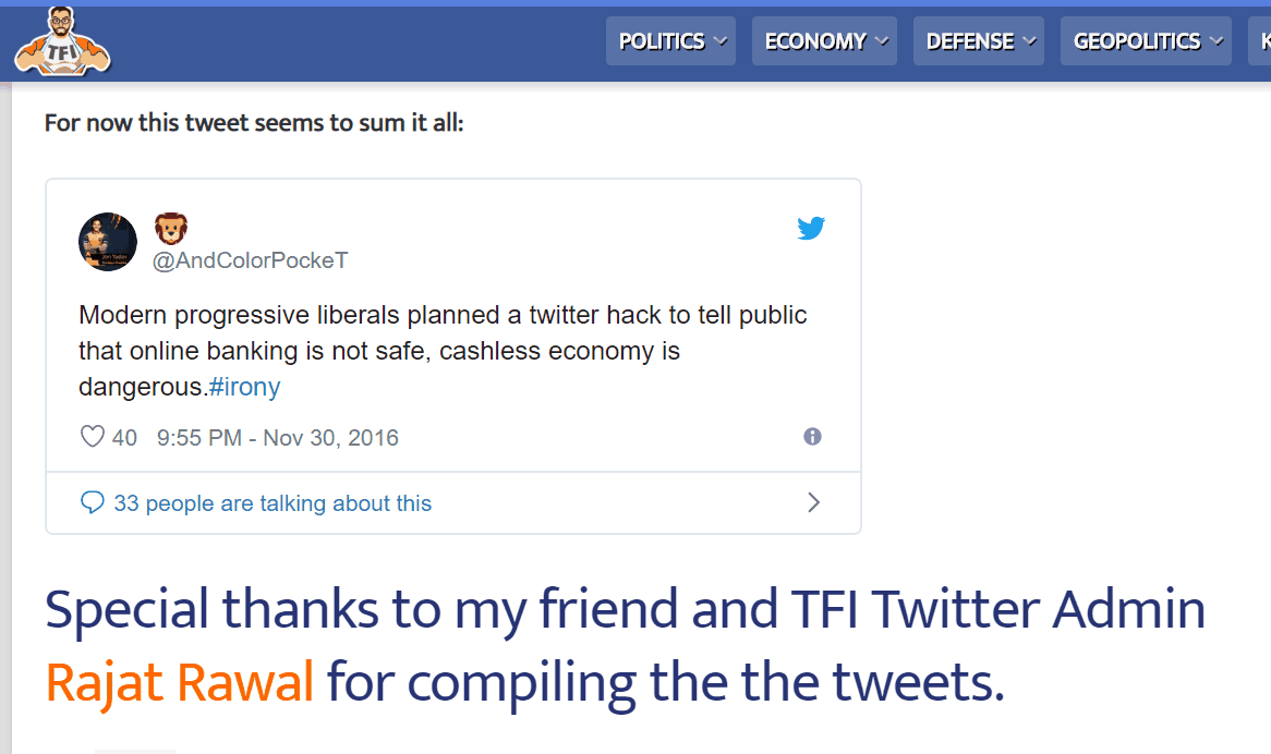rightlog.in दक्षिणपंथी वेबपोर्टल के एक लेख के मुताबिक, @AndColorPocket अकाउंट को रजत रावल चलाते हैं, जो फेसबुक पेज The Frustrated Indian के एडमिन भी है।