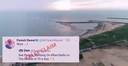 ट्विटर पर एक वीडियो के साथ पोस्ट किया गया यह संदेश व्यापक रूप से शेयर किया गया था। यह वीडियो समुद्र में एक बीच (जमीन) के हवाई दृश्य से शुरू होता है और इस पर खड़े सैकड़ों लोगों को दिखलाता है। दावा है कि यह महाकाव्य रामायण का प्रतिष्ठित पुल – राम सेतु है।