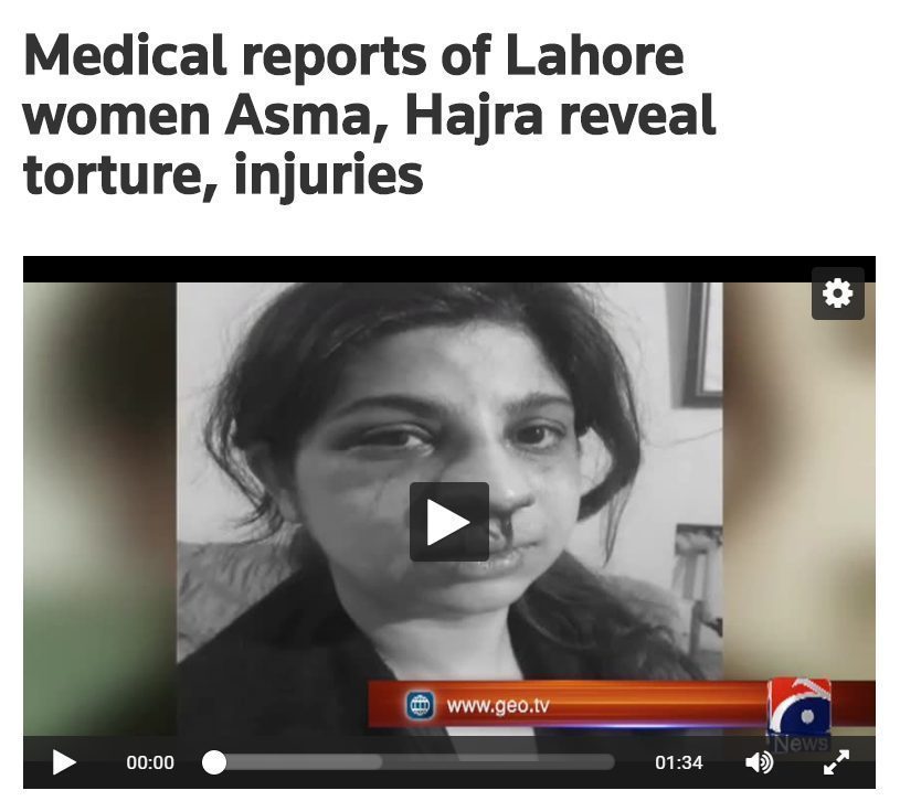 घायल महिला की तस्वीर को गूगल पर रिवर्स सर्च करने पर, हमें पाकिस्तानी मीडिया संगठन Geo TV द्वारा 29 मार्च, 2019 को प्रकाशित किया गया एक लेख मिला। लेख में महिला की पहचान हाजरा के रूप में की गई है, उसने अपने पति पर पीटने का आरोप लगाया और जिसकी वजह से उसे कई चोटें भी आयी है। लेख के मुताबिक,”इस बीच, हाज़रा की मेडिकल रिपोर्ट में बताया गया है कि उसे नाक और जबड़े में चोट आयी है। उसके पति को लाहौर के अस्करी इलाके से 10 दिन पहले ही गिरफ्तार किया जा चूका था, हाजरा ने बताया की अपने माता-पिता से पैसे नहीं लाने की वजह से उसे प्रताड़ित किया गया था”-(अनुवाद)।
